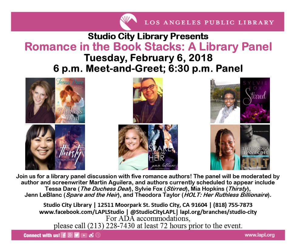 For romance lovers, this will be a “can’t miss” event. I know three of these authors and have read one other. All of them can spin a great tale so so this should be a fun and hot literary event.